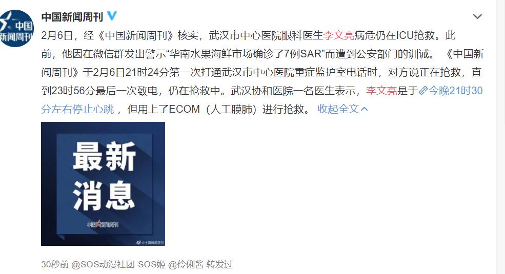 #用生命预警的英雄# 到底是不是还在抢救?祈祷真的还在抢救!李医生,一定要挺过来啊!
