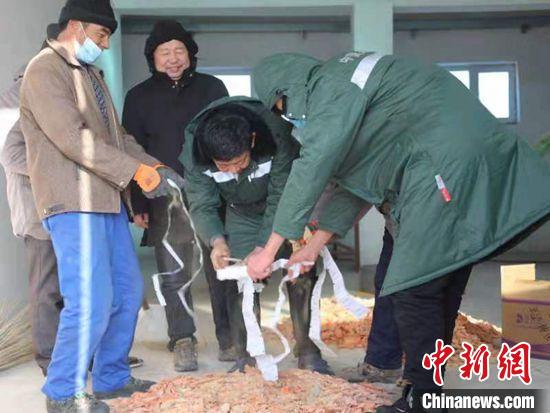 乌鲁木齐1月2日电 (张赫凡)近日,北京林业大学李凯教授先后带领8名研究人员,来到新疆野马繁殖研究中心,冒着零下20多度的严寒,为新疆普氏野马驱虫,采取粪便样本,将其中的马副蛔虫、线虫、马胃蝇等寄生虫挑捡出来,进行研究分析。